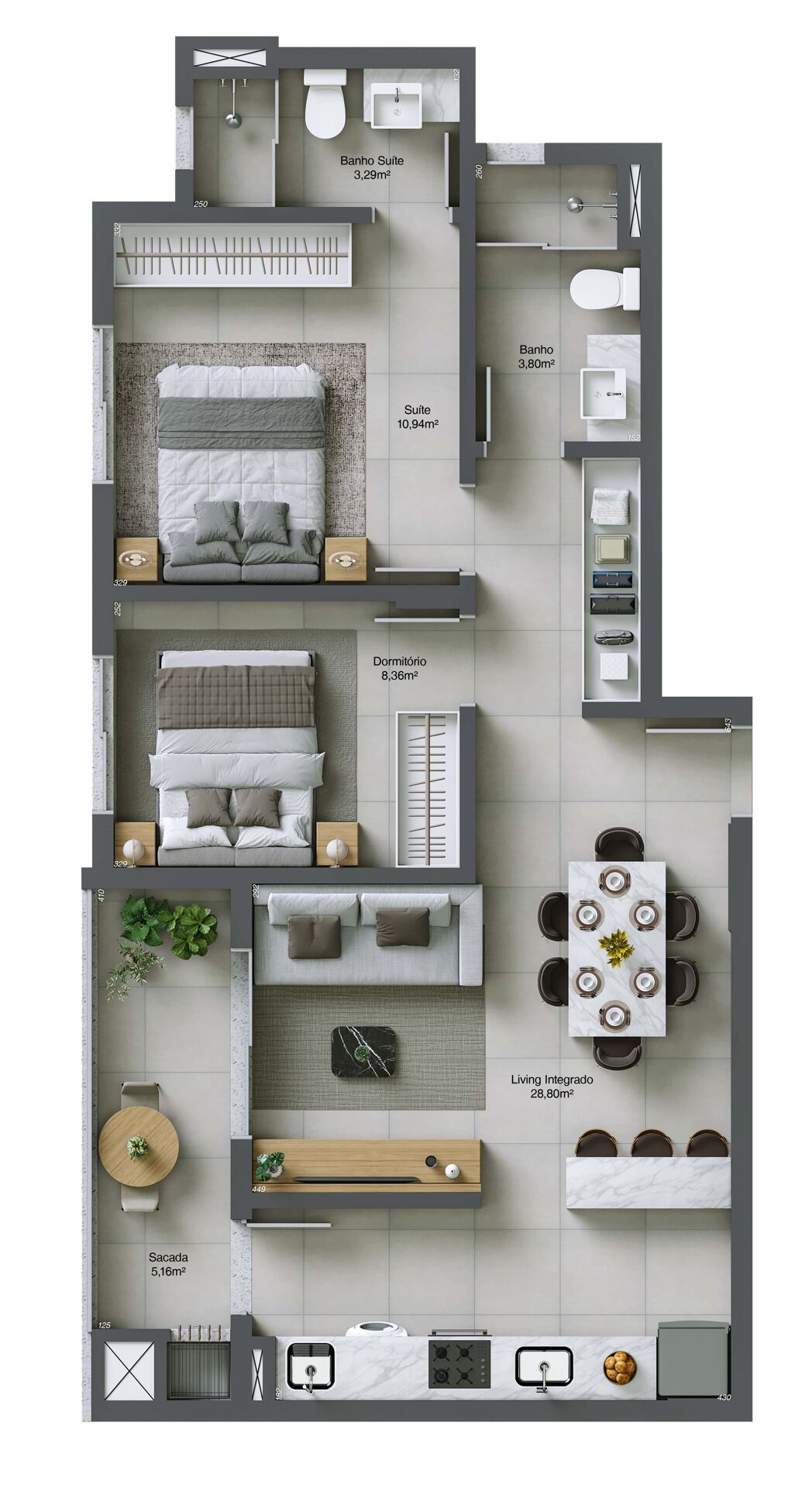 O empreendimento apresenta um projeto contemporâneo, com arquitetura moderna e ambientes planejados para oferecer conforto e funcionalidade. Entre os diferenciais estão espaços de convivência pensados para o dia a dia dos moradores, como academia, espaço coworking e salão de festas. Uma opção ideal para quem busca morar com praticidade no centro de Tubarão, com tudo ao alcance de poucos minutos;