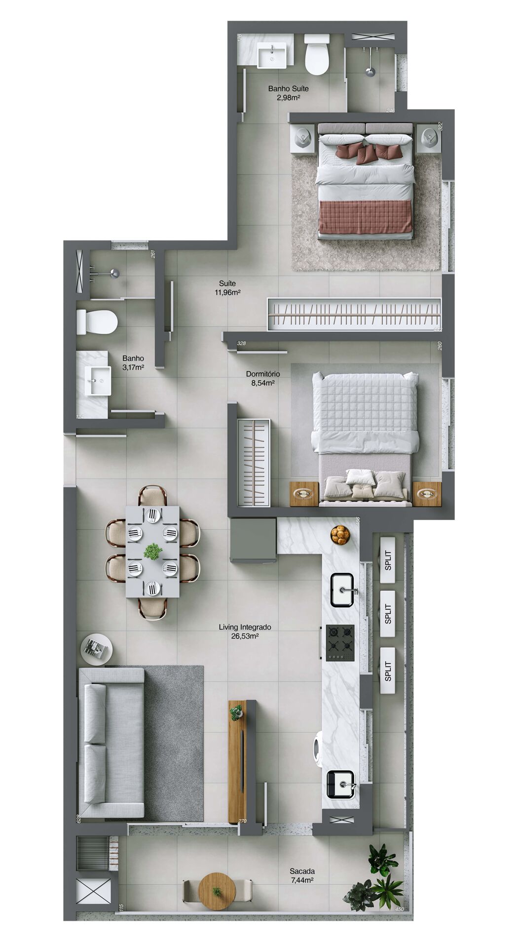 O empreendimento apresenta um projeto contemporâneo, com arquitetura moderna e ambientes planejados para oferecer conforto e funcionalidade. Entre os diferenciais estão espaços de convivência pensados para o dia a dia dos moradores, como academia, espaço coworking e salão de festas. Uma opção ideal para quem busca morar com praticidade no centro de Tubarão, com tudo ao alcance de poucos minutos;
